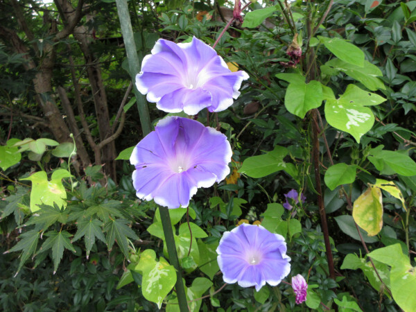 縁の白い大倫の朝顔が一番先に目に飛び込んできます。